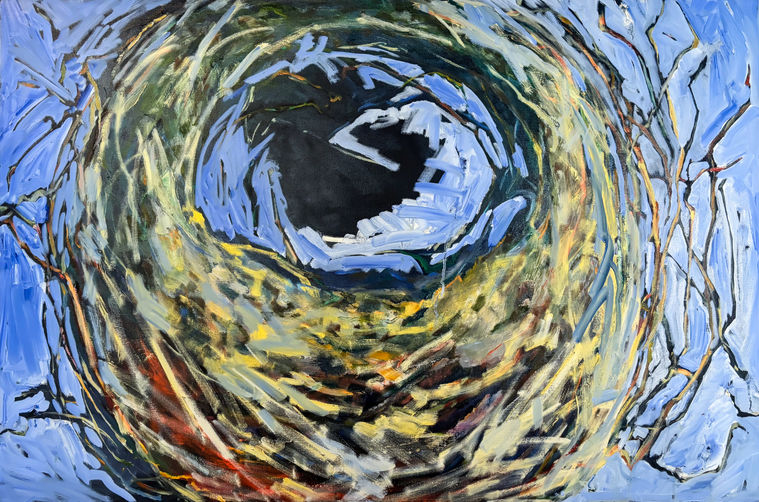 I’ve been working on this series for decades, including painting nests in oil, acrylic, encaustic, mixed media, and constructing models of Robin and Weaver bird nests to better understand avian architecture. Besides being structurally beautiful and lending themselves to line drawing, they are also temporary homes built of debris.